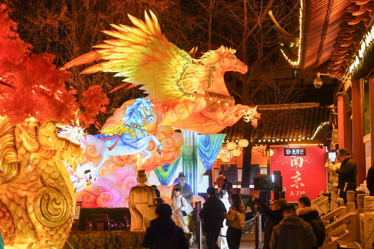 12月30日晚,第四十届中国·秦淮灯会主会场夫子庙大成殿试亮灯,四大主题区域30余灯组同时点亮,华光流转,绮丽初绽。邵丹 摄