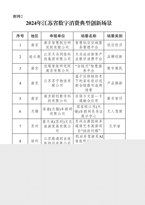 为培育壮大数字消费,打造全新消费场景,推动以新场景、新服务、新体验、新潮流为特点的新型消费加速涌现,带动消费结构升级,省数据局面向各地重点企业(单位)开展了数字消费创新场景征集工作。日前,经地方初审、形式审查、专家评审、合规审查、面向社会公示等程序,确定“智慧低空空域服务管理平台”等50个场景为“2024年江苏省数字消费创新场景”,确定“低空经济”等10个类别中的第1名为“2024年江苏省数字消费典型创新场景”。