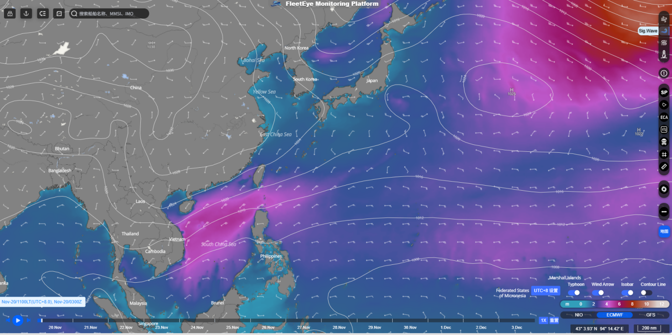 九方科技自主研发的远航气象导航系统,由数据底座、气象预测大模型、航线规划智能体三大部分构成。系统管理着全球气象、地形、船舶、海图、航线、港口、卫星等海量数据,基于AI技术构建了数据的汇聚、清洗、校正、挖掘、融合、调度、分发等全自动化管理流程;气象大模型实现了万倍于传统数值模式的预报效率,可提供长达365天的未来全球大气和海洋预报,并支持轻量化部署与边缘计算;系统深度整合行业知识,利用AI算法模型、AI-Agent智能体实现了多目标航线自动规划、船舶姿态预测、全航次油耗预测、碳排放量预测等,预报精细度和准确度行业领先。