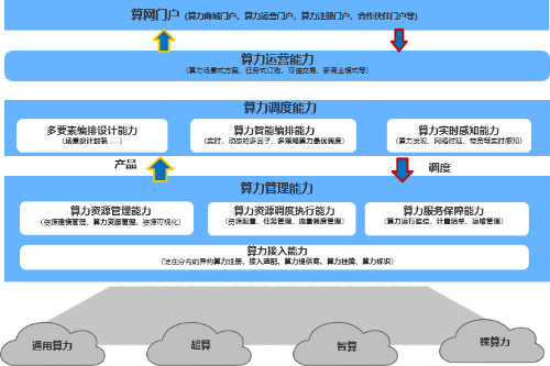平台以“采集与控制模块”为枢纽,向下对接通算、超算、智算、边缘计算等多类资源,向上依托统一纳管感知、任务式调度等六大能力,覆盖资源纳管、场景 API 设计、意图匹配等细分功能,实现算力全链路的高效统筹、智能调度与可信运营,是支撑“全网算力一张网”的关键技术平台。