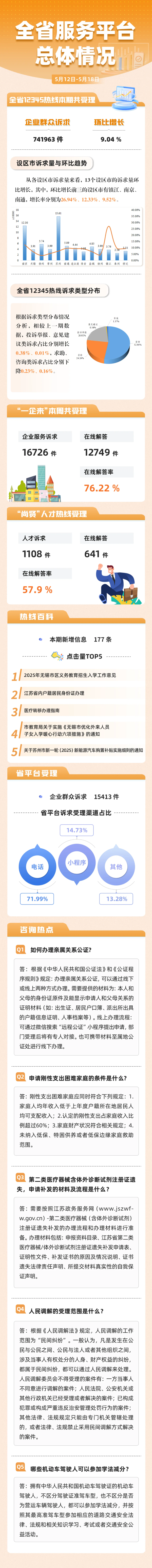 一图读懂江苏12345热线运行情况(5月12日-5月18日)