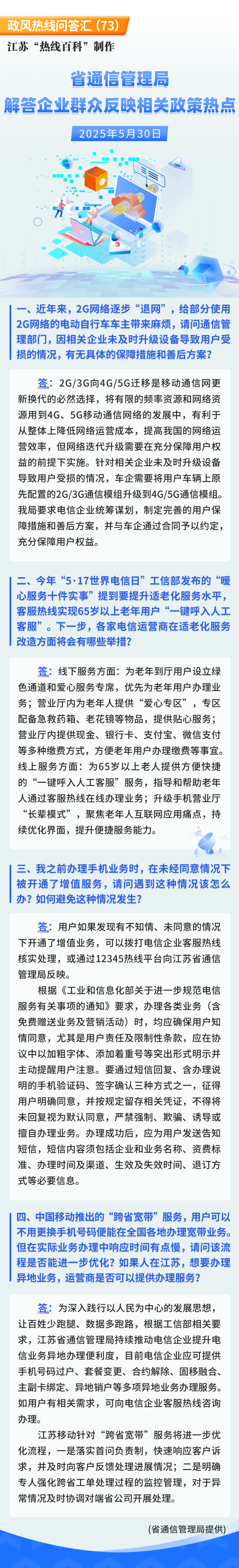 政风热线问答汇(73)省通信管理局解答企业群众反映相关政策热点