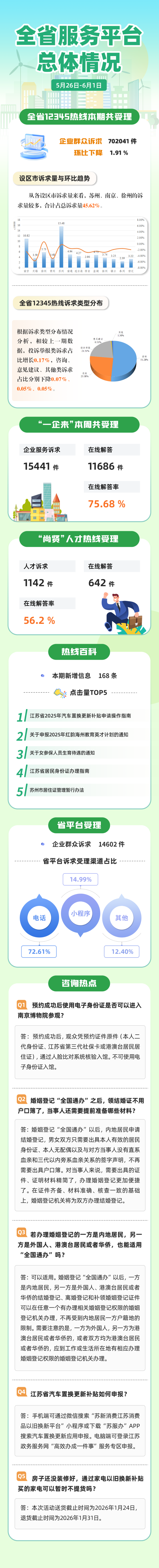 一图读懂江苏12345热线运行情况(5月26日-6月1日)
