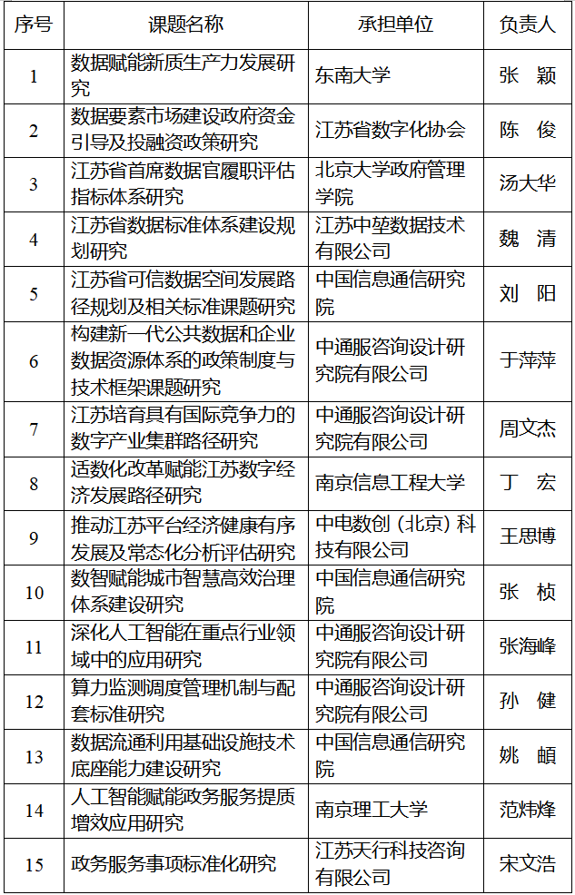 在此向关心江苏数据事业、积极参与课题征集的所有单位和专家表示诚挚感谢!