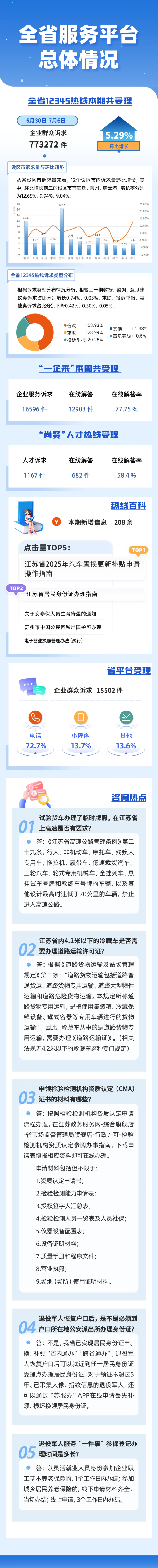 一图读懂江苏12345热线运行情况(6月30日-7月6日)