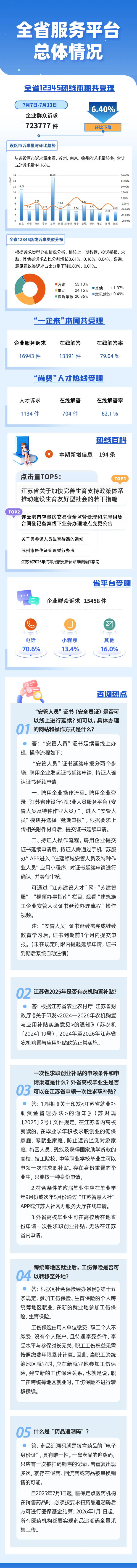 一图读懂江苏12345热线运行情况(7月7日-7月13日)